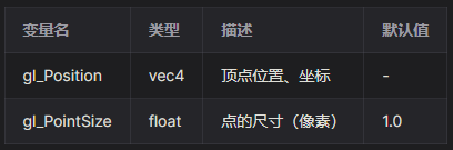 gl_Position的类型—— vec4 明显比 gl_PointSize 的 float 要特别。如果说需要的顶点坐标数据是 (x, y, z),那么好像也才只有 3 个浮点数,那第 4 个数是什么呢?