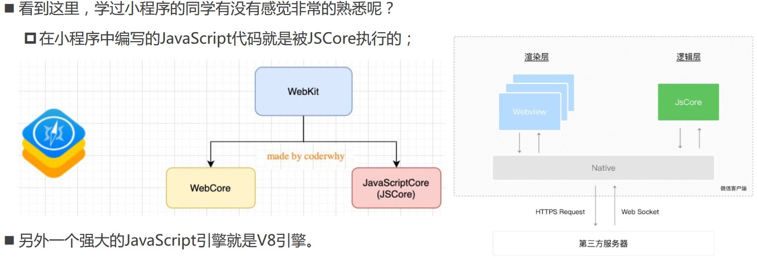 - JavaScriptCore:WebKit中的JS引擎,Apple公司开发;