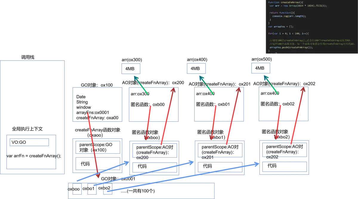 //调用100次createFnArray(),就会有100个createFnArray对应的AO。