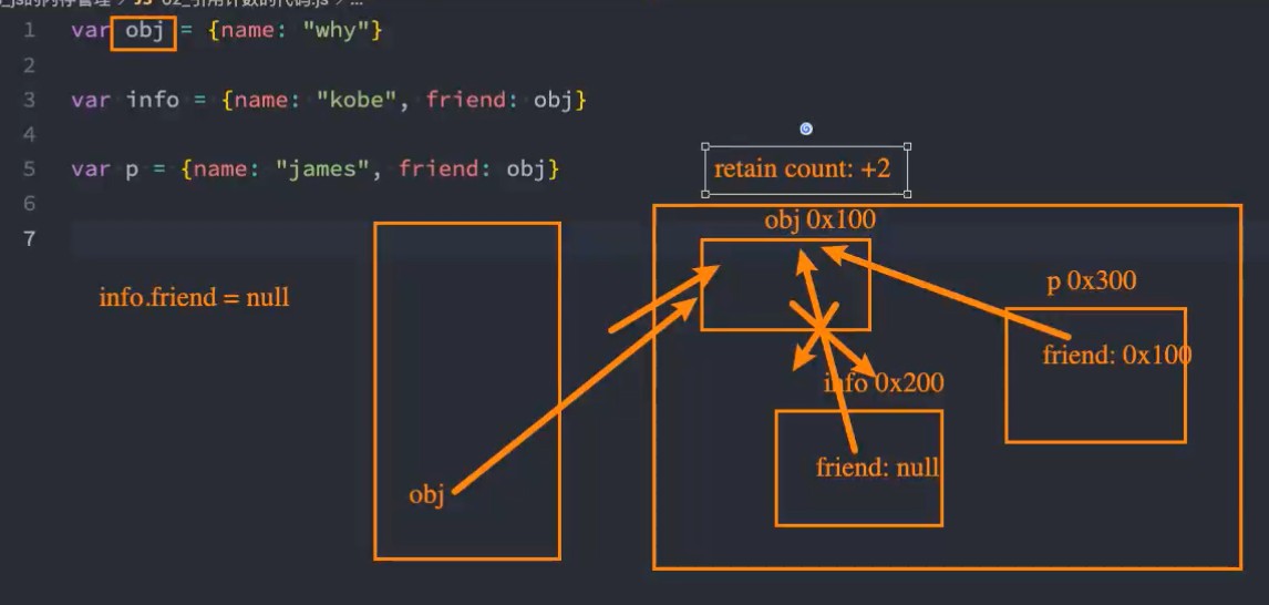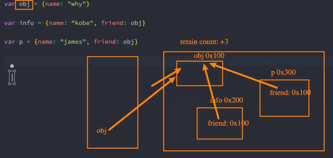 let b = a // 此对象的引用计数是 2(a,b引用)
