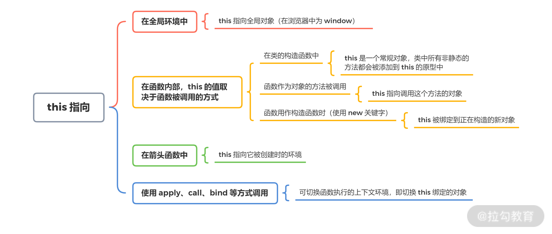 根据 JavaScript 中函数的调用方式不同,this的指向分为以下情况。