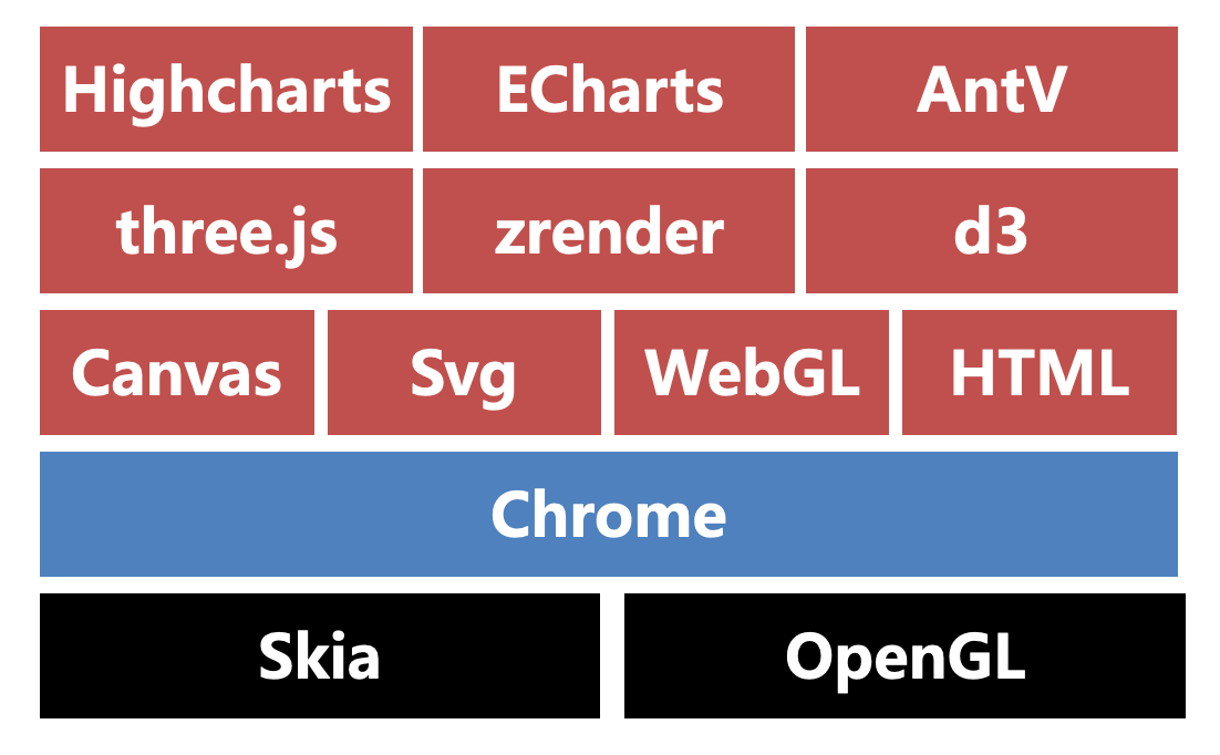 Chrome 使用 Skia 作为绘图引擎,向上层开放了 canvas、svg、WebGL、HTML 等绘图能力。