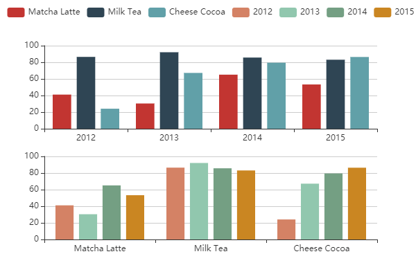 用户可以使用 seriesLayoutBy 配置项,改变图表对于行列的理解。seriesLayoutBy 可取值: