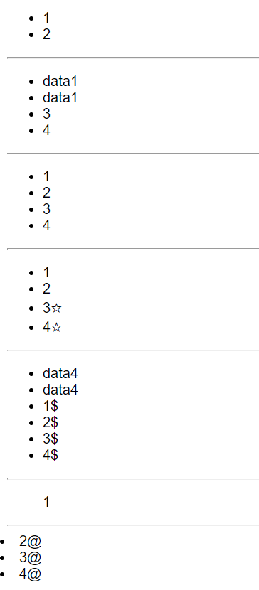 k4.selectAll("li").data(arr1).text(d=>d).enter().append("li").text(d=>d+"☆")