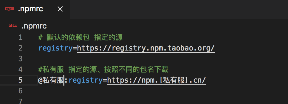 - 配置.npmrc, 在npm i 的时候,如果项目根目录下有这个文件,会自动从这个镜像地址下安装node_modules,不需要手动设置镜像地址