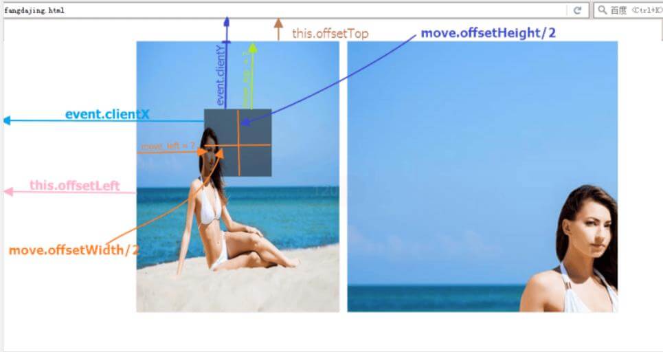 可以封装后使用,稍微修改一下也可以支持vue、react magnifier传递四个参数,分别是包裹小图片的盒子,包裹大图片的盒子,放大区域,放大的局部图片