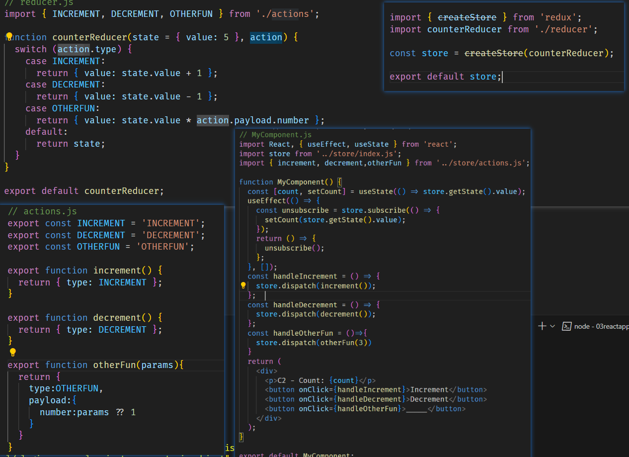 - redux import{createStore,combineReducers,compose,applyMiddleware} from 'reudx'