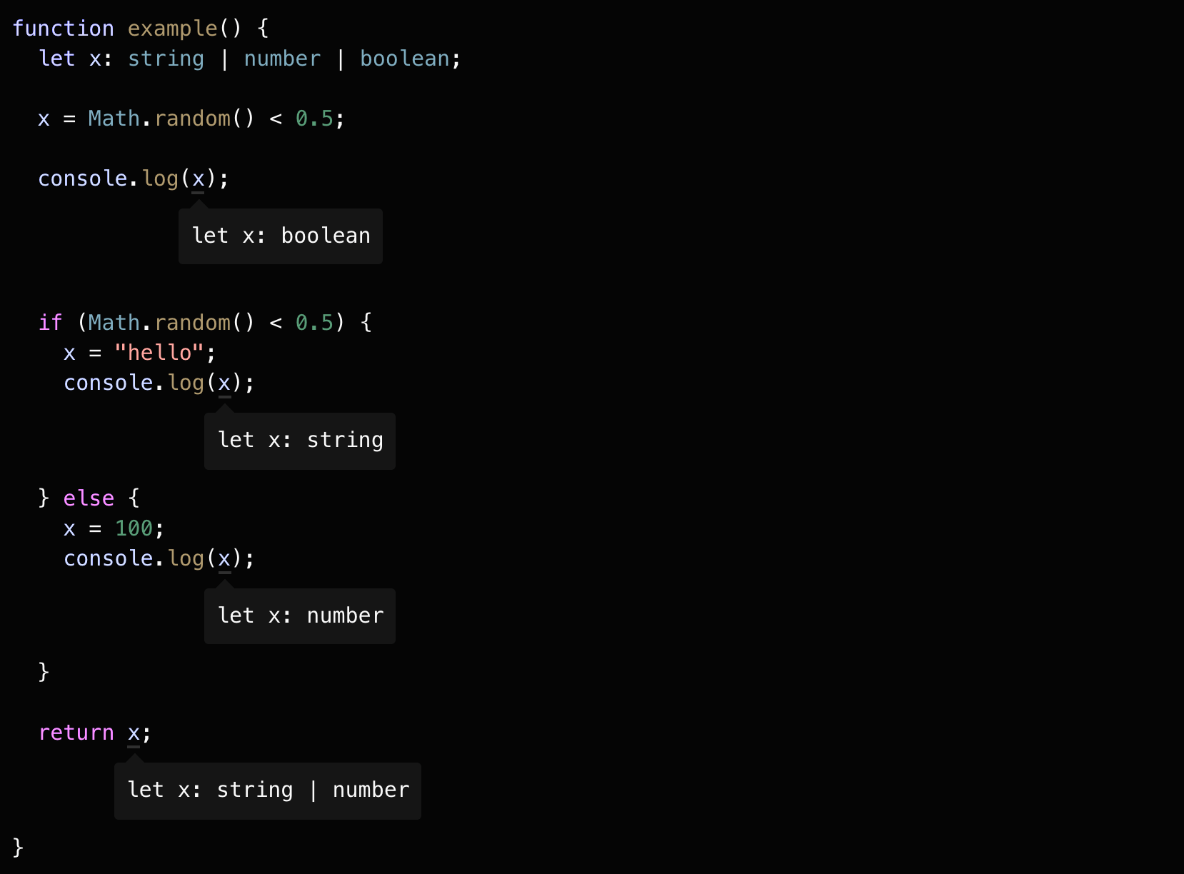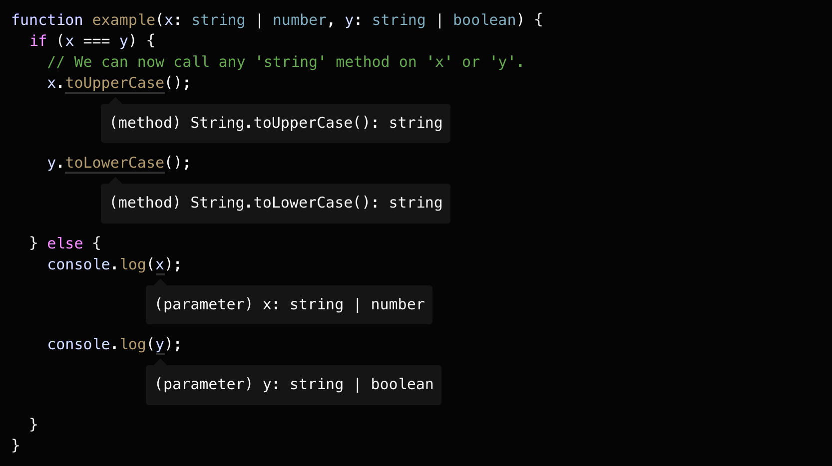 - 最后得到的结果就是 number | string.