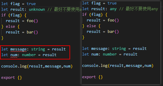 如果只声明不赋值,直接使用的话,当声明类型为undefined或者any时才可以,即使是null,也需要赋值