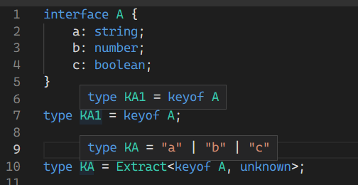 - 由于联合类型具有分布式的特性,Person['id' | 'name' | 'age'] 变成了 Person['id'] | Person['name'] | Person['age'];