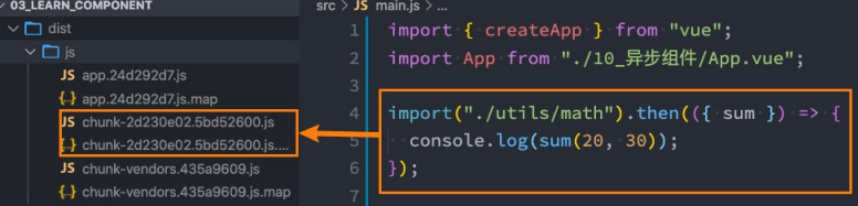 - 所以,对于一些不需要立即使用的组件,我们可以单独对它们进行拆分,拆分成一些小的代码块chunk.js;