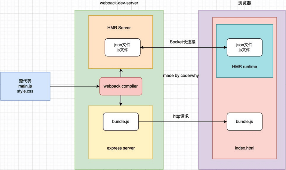 原理:webpack-dev-server会创建两个服务:提供静态资源的服务(express)和Socket服务(net.Socket);